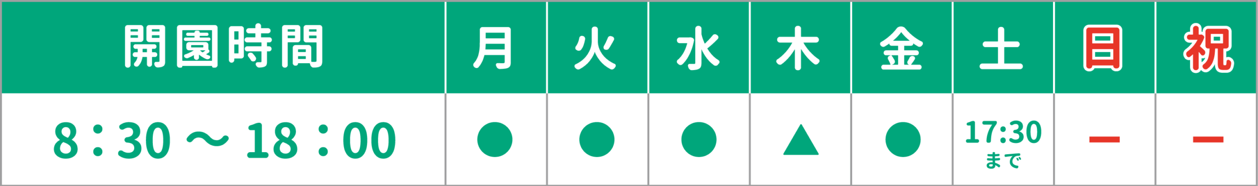 【開園日】月曜~金曜日 8:30~18:00 (受付8:15~)